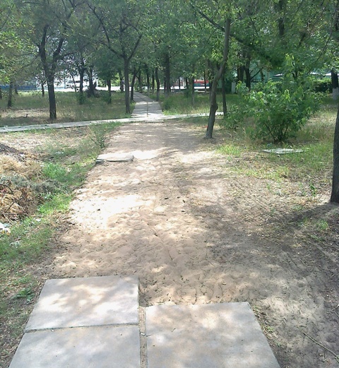 Удивляет, что остатки других дорожек, служивших жителям микрорайона до устройства ограды Храма, остались не тронутыми. Возникает впечатление, что кто-то пытается превратить уютный уголок зелени в глухой тупик.