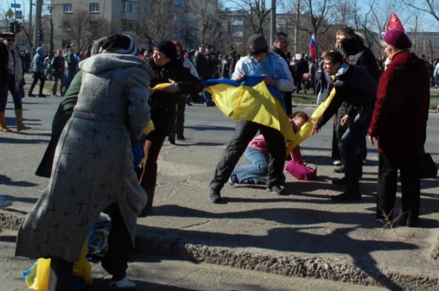 «Мы вышли из троллейбуса и видим такую картину - в сквере находится человек 40 с длинным Украинским полотнищем флагом, а возле Городского ДК толпа людей с флагами России, - сообщили очевидцы происшествия, - И в этот момент, со стороны этой толпы с криками бей нацистов, мы им сейчас покажем, начинает бежать толпа молодых людей с битами в руках, с флагами, с бутылками. Они перебегают проспект Химиков и начинают бить мирно стоящих людей, вырывать у них флаги, кидать их на землю. Две женщины попытались забрать флаг назад, но их просто били и толкали. При этом выкрикивались слова - Россия, Россия с нами».