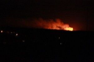 Несколькими часами ранее, около 22:00, террористы нанесли артиллерийский удар по поселку Металлист, расположенному в 12 километрах к северу от Луганска. На фотографии, сделанной одним из местных жителей, видно, что в районе обстрела начался пожар: