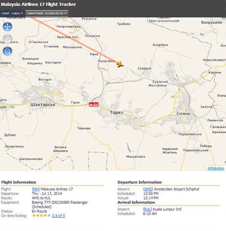 "В 16-20 исчезла связь с малазийским пассажирским самолетом "Malaysia Airlines", который шел из Амстердама на Куала Лумпур на высоте 10 тысяч метров над территорией Украины в пределах международного коридора", - сообщил собеседник.
