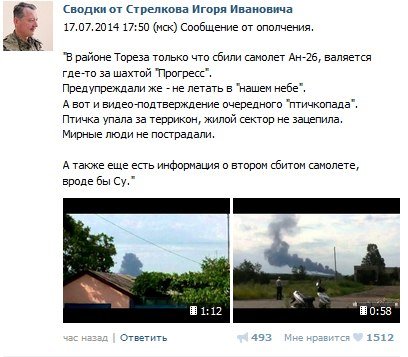 Сегодня на форумах пророссийских активистов хвастались сбитым самолетом. Похоже на то, что боевики ДНР сбили пассажирский самолет, приняв его за самолет украинской армии.