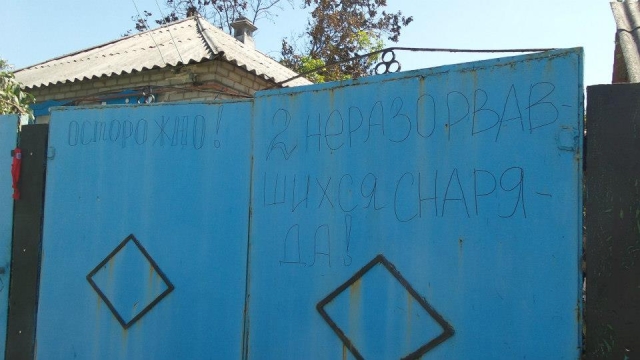 Детский сад «Колосок». Раньше здесь была база боевиков, а теперь разместились бойцы батальона «Донбасс». Прямо у входа стоит немало ящиков с минами к минометам.