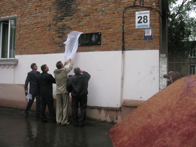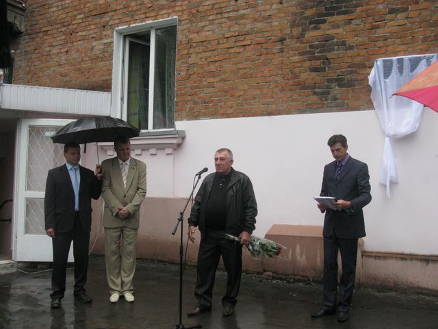 Заместитель городского головы Кравченко В. Г. , секретарь городского совета Гавриленко А. А. и внук Пухальского Рудь В. А..открыли мемориальную доску.