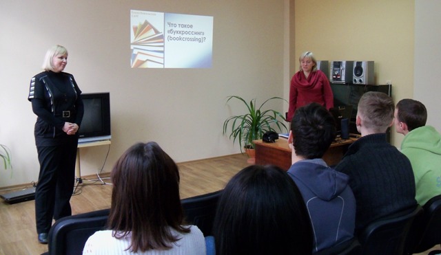 На презентации книжной полки присутствовали ученики СШ № 5. Ребята познакомились с движением буккроссинга в Украине и мире, узнали о сайтах буккроссинга, регистрации книг.