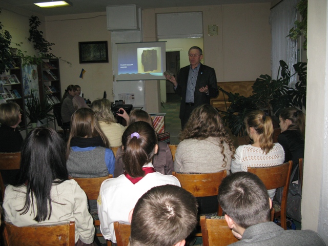Благодаря новым книгам об истории нашего края краеведческая деятельность в библиотеке получила новый импульс. А их в библиотеке собралось уже немало. Одним из самых активных авторов стал Каленюк Сергей Петрович, член Национального союза краеведов Украины, который на протяжении многих лет собирает по крупицам исторический материал о нашем крае, исследует старые карты, находит артефакты и всем этим охотно делится с читателями. Такие книги КаленюкаСергея Петровича как: «Давня історія Сєвєродонецька»,«Террафоксы и другиелисичане»,«Роти полку Депрерадовича»,«Краєзнавцю про вимірювання»занимают в фонде библиотекидостойное место. Познакомиться с книгами и автором этих книг можно было на недавно состоявшейся в библиотеке краеведческой скайп-конференции с одной из библиотекНовопсковской ЦБС, таккакименно там живуттакие же энтузиасты и знатокисвоегокрая, наиболееизвестные наЛуганщинекраеведыА. В. Чернуха та В. И. Золотарев. К нам на мероприятие пришли лицеисты, детиоченьлюбознательные, читающие ( а это – немаловажно). Они с интересомрассматривалистарыекарты нашого края, старинныемонеты, кусок окаменевшего дерева, которые были предоставлены Сергеем Петровичем для наших гостей.