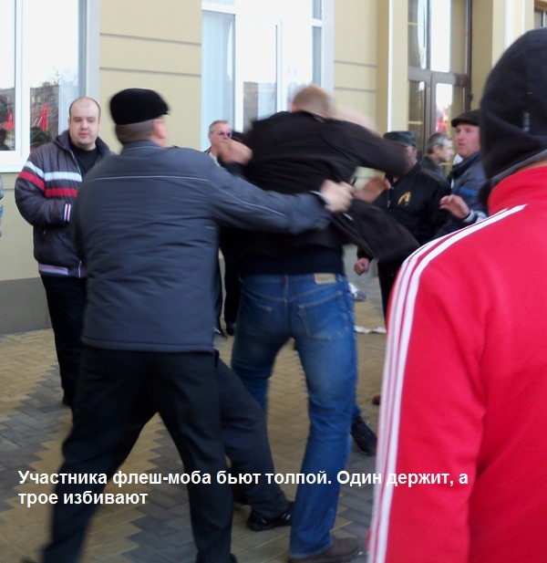 Ох и брешете вы, впрочем как и все СМИ. Были побои, но только после того, как "мирные" флешмобовцы применили слезоточивый газ. Это раз. Бит и бутылок не было - это два. Да и пьяных там было раз-два да и те стояли в сторонке и в эпицентр не лезли.