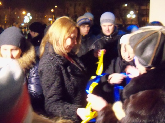 Более трехсот северодончан поддержали всеукраинскую акцию «Зав’яжемо стрічку єдності від Донбасу до Галичини». Мероприятие состоялось сегодня, 22 января, возле Городского дворца культуры и было приурочено ко Дню соборности Украины.