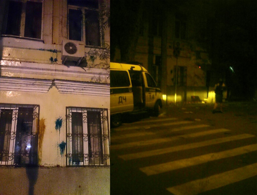 Факт нападения подтвердил украинский консул Александр Ковтун: «Они побили стекла, все вокруг консульства. Сорвали вывески и кирпичами закидали, яйцами, помидорами, мусором всяким».