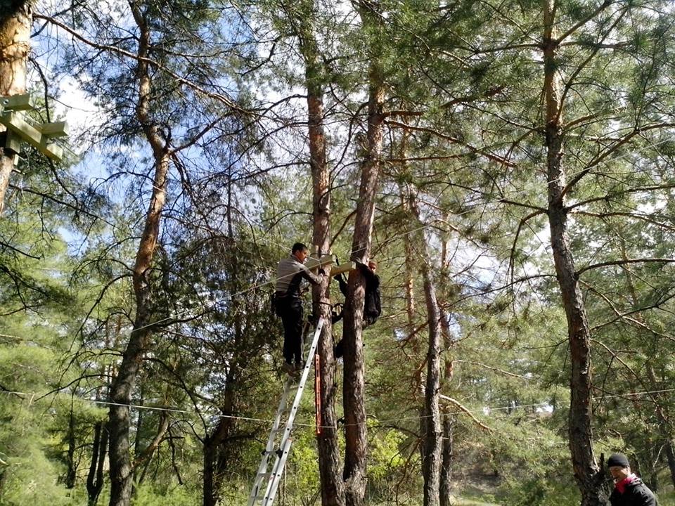 «Уже практически все готово к открытию, - поделился руководитель проекта Андрей Сутковой, - У нас будет несколько видов аттракционов. Вы сможете покорить высоту, взобравшись по веревочной лестнице, пройти по канату над бездной, форсировать пропасть по качающемуся мосту, и ощутить свист ветра при скоростных спусках - “троллеях”, скользя на специальном ролике по металлическому тросу, проверить свои навыки в стрельбе из лука, арбалета и даже из духовой трубки».