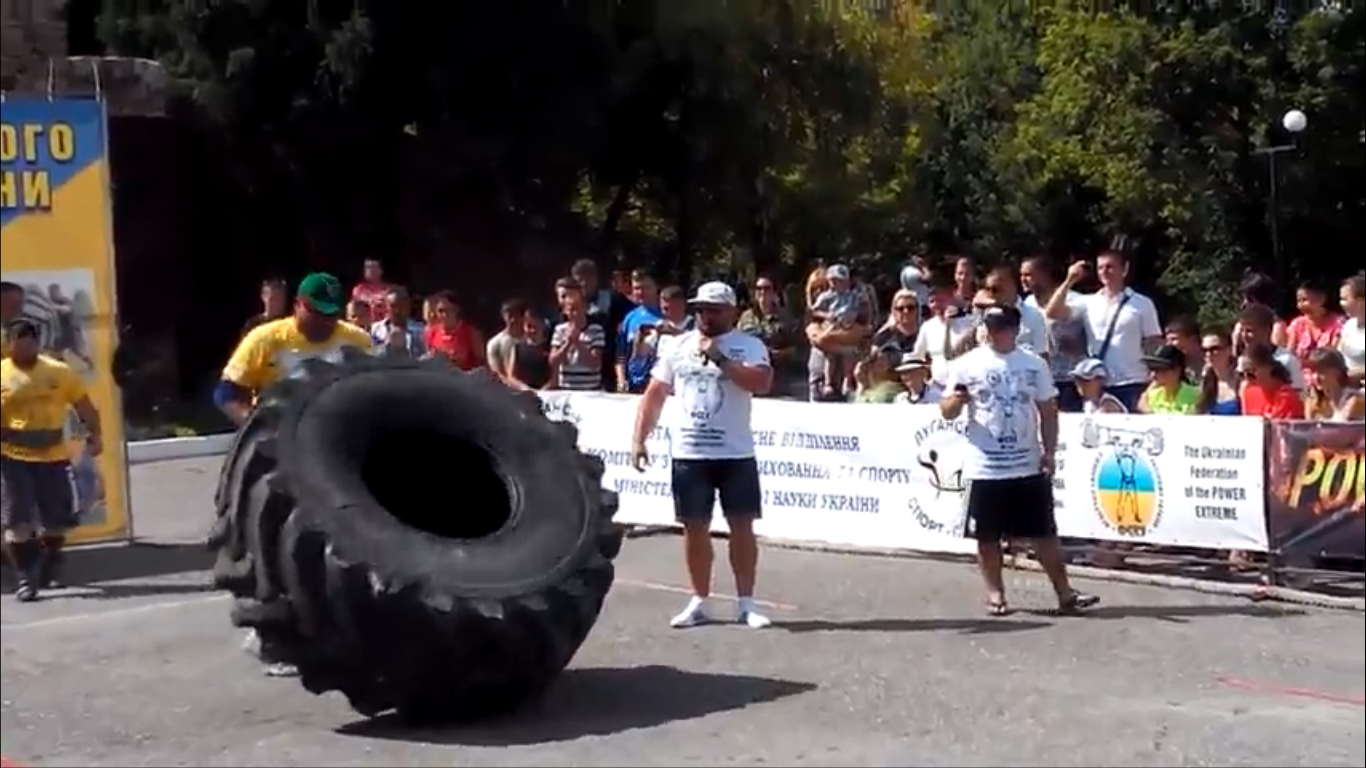 Спортсмен из Донецкой области Михаил Ходяков установил новый рекорд Украины в поднятии покрышки, сделав 6 оборотов за 24 секунды.
