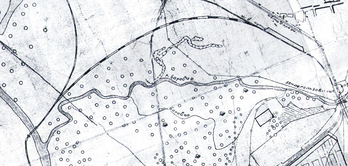 На плані проектувальників 1960-х років ще бачимо підпис під старим руслом Борової “ст. Боровая” - стара Борова. Але всі відгалуження річки на північ Борової, за межами залізничної лінії вже засипані.