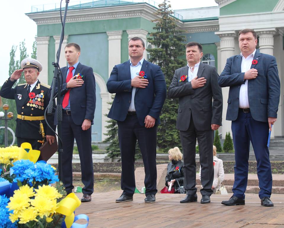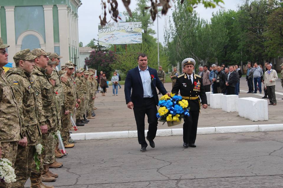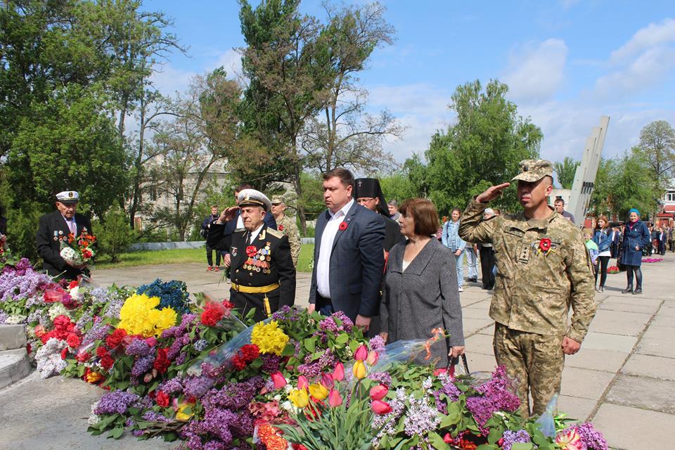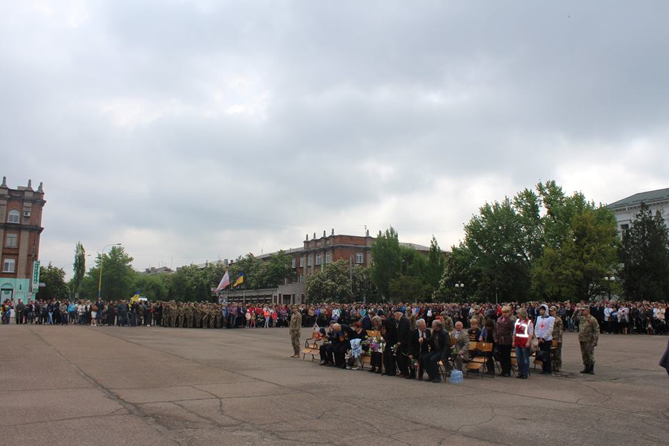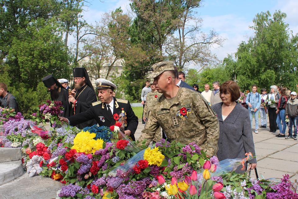 Після привітальних виступів заступник міського голови Олексій Ярош разом з керівником міської Ради ветеранів Володимиром Федоровичем Корженко поклали квіти до пам’ятнику генерал-майору Олександру Радієвському, який командував операцією по звільненню Сєвєродонецька від незаконних збройних формувань 22 липня 2014 року і загинув наступного дня. 9 травня Олександр Віталійович міг би святкувати 47-й день народження.