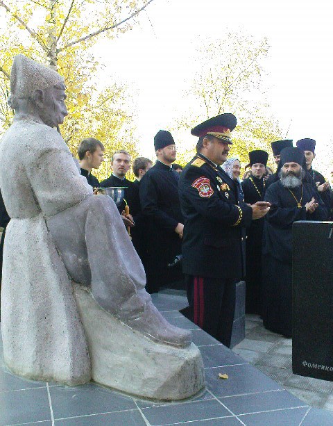 Сергей Иванов, заместитель атамана Северодонецкой ячейки союза «Казачьи объединения Украины», полковник:«Возможно, кто-то спросит: «Почему в Северодонецке, сравнительно молодом городе, устанавливается памятник казачеству?» Если вспомнить историю, то земля наша пропитана потом и кровью казаков и все окружающие села – это все бывшие казачьи хутора. Поэтому Северодонецк достоин этого знака, этого памятника».