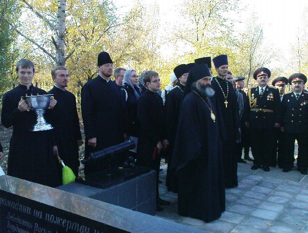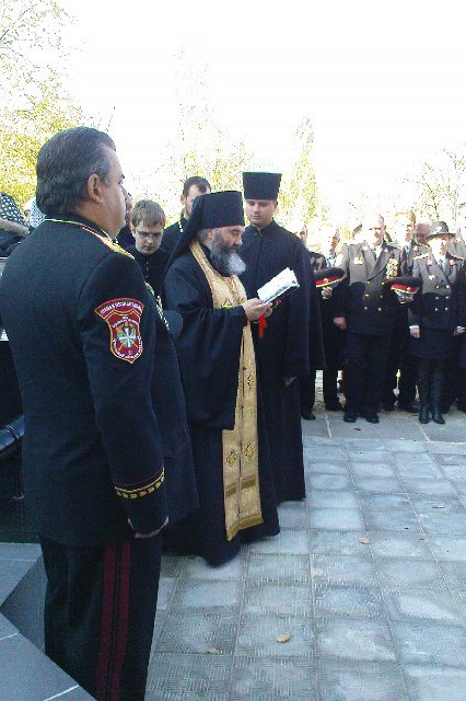 Владимир Оруджевич Мухтаров, атаман, руководитель Северодонецкой городской ячейки Международной общественной организации украинского казачества "Казачий полк имени Богдана Хмельницкого": «Организатор мероприятия – Северодонецкая городская ячейка Международной общественной организации украинского казачества. 17 октября состоялось освещение места монумента, а сегодня – торжественное открытие памятника. Это – памятник символу казачества. Наши перспективы на будущее – возрождение традиций казачества нашего украинского народа на территории города Северодонецка».