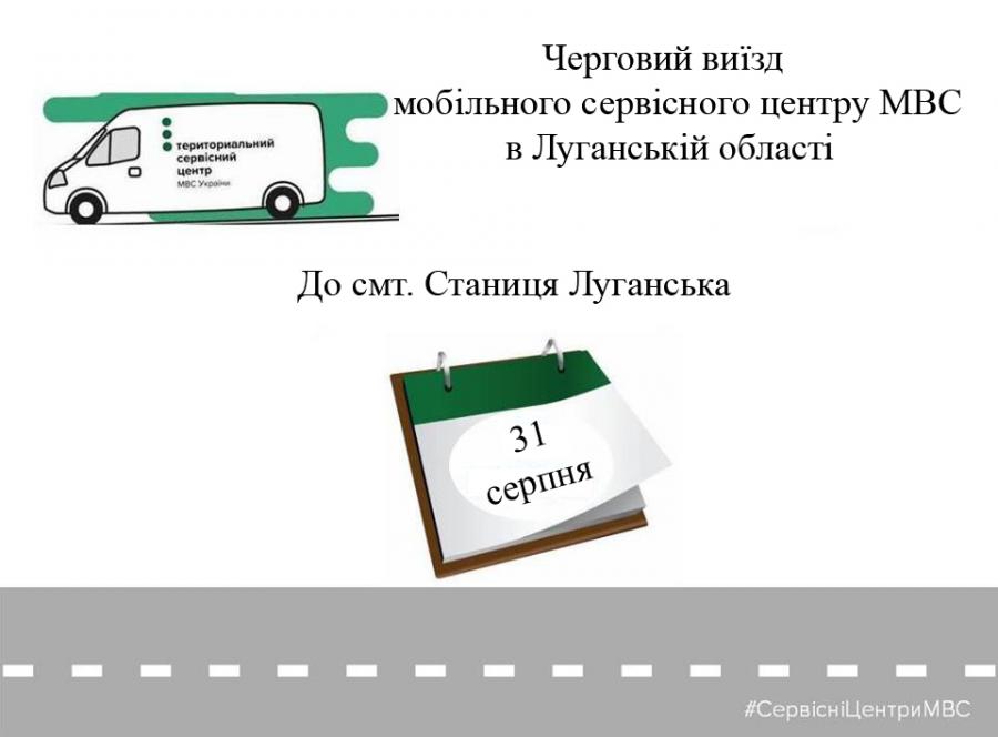 31 серпня мобільний сервісний центр МВС надаватиме послуги у смт. Станиця Луганська
