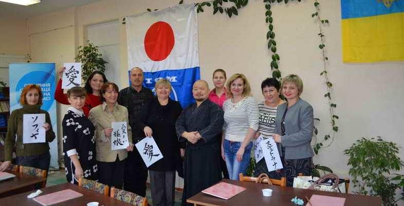23 декабря в Северодонецкой городской библиотеке для юношества им. И. Б. Курлата состоялся мастер-класс японской каллиграфии, организованный мастером Хиточи Накамура в рамках проекта «Сприяння стабілізації громад на Донбасі», реализуемого Международной организацией по миграции (МОМ) в Украине при финансовой поддержке Правительства Японии.