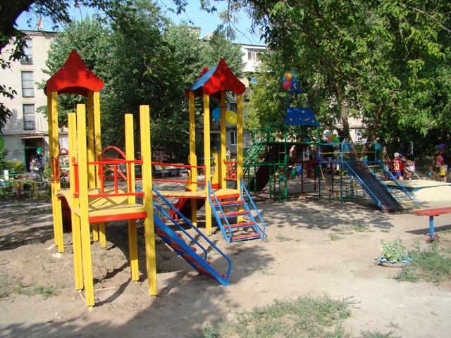 «Сначала здесь была одна горка ржавого цвета, а потом мы все собрались и начали её красить в сине-зелёный цвет, затем через несколько месяцев она стала такой, какой сейчас она есть. Потом поставила нам лавочку и песочницу, которые тоже покрасили. Потом, когда организовывалось строительство, мы помогали: рыли ямки, садили цветы, поливали. Пожелание, ещё бы одни качели сделали, а то всем в очередь становиться», - рассказал представитель младшего поколения двора Богдан.