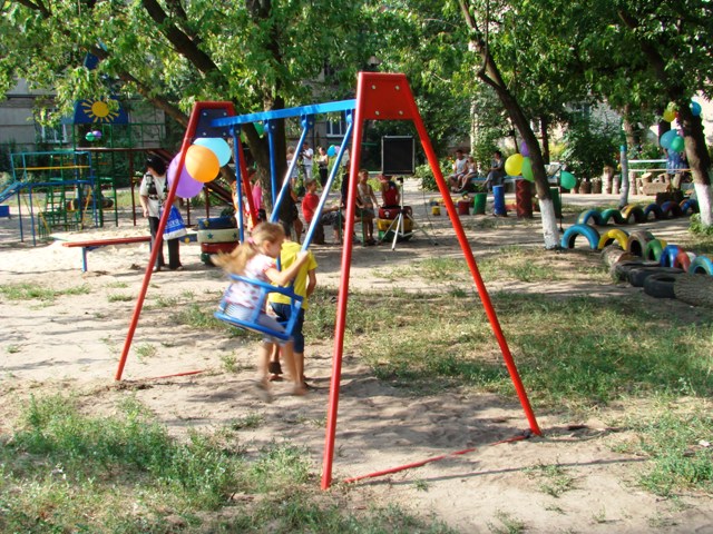 Екатерина Евгеньевна, мама: «В строительстве этой площадки мы всей семьёй принимали участие и дети наши, и муж, закапывал колёса, красили. Очень приятно было, и поучаствовать, детям останется это очень хорошее место для игр».