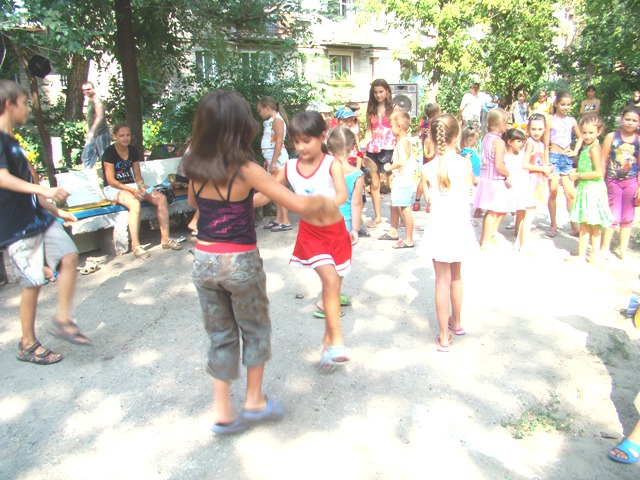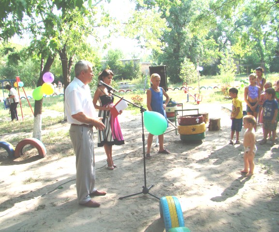 Катя Коробченко, активная участница праздника, с воодушевлением тоже поделилась впечатлениями: «Мы здесь и колёса красили и горку возобновили, мало того, что здесь поставили новую площадку и отремонтировали старую, отремонтировали горку, колёса везде поставили. Вообще сделали всё хорошо, украсили двор, и я думаю, сюда будет очень много приходить детей играть. Здесь всё красиво, уютно, хорошо и качели для маленьких детей и горки. Сегодняшний праздник понравился, всё хорошо!».