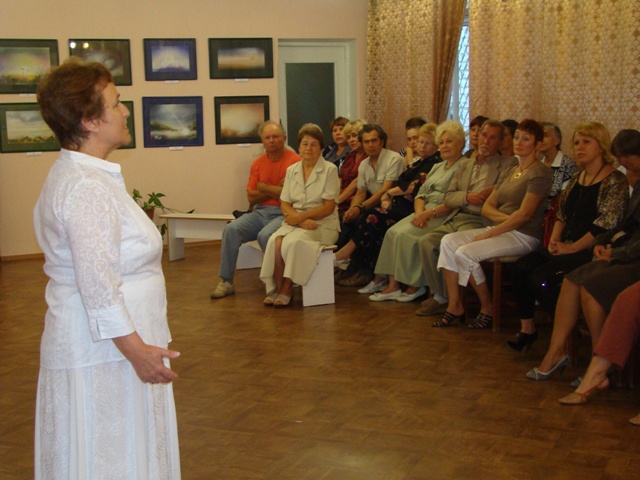 «Картины все чудесные, но их нужно принять, нужно на них долго смотреть и вникнуть в этот мир, так сразу всё нельзя охватить. Я, например, - говорит Анна Петровна Ерёменко, житель города Северодонецка, пока здесь сижу, несколько картин с удовольствием посмотрела и прониклась. Нужно время и отрешиться от всего и тогда, что – то поймёшь. Получила массу удовольствия».
