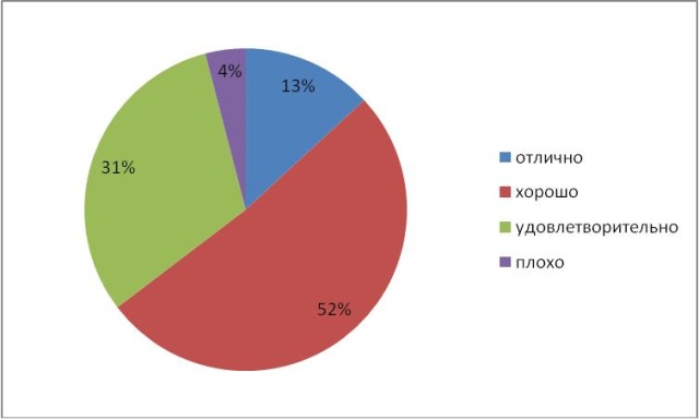 51 читатель оценил газету хорошо, 31 – удовлетворительно, 13 читателей оценили газету – отлично и 4 – плохо.