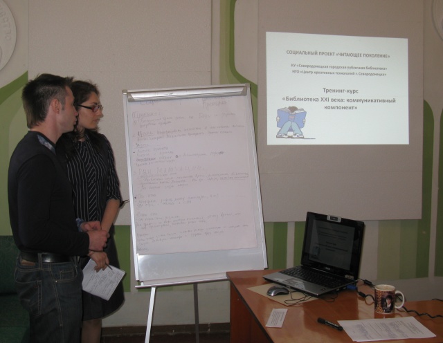 - Тренинг-курс «Библиотека ХХІ века: коммуникативный компонент» организован в рамках социального проекта «Читающее поколение» общественной организацией «Центр креативных технологий» и Северодонецкой городской публичной библиотекой при поддержке отдела культуры Северодонецкого горсовета, технической поддержке Северодонецкого агентства развития громады и бизнес-клуба «Европейский выбор».