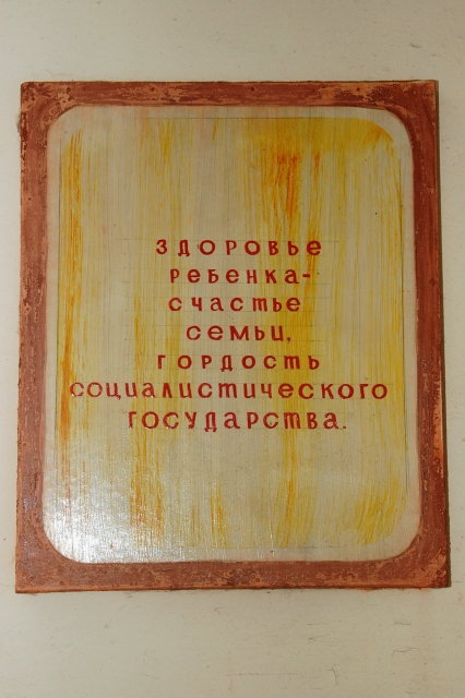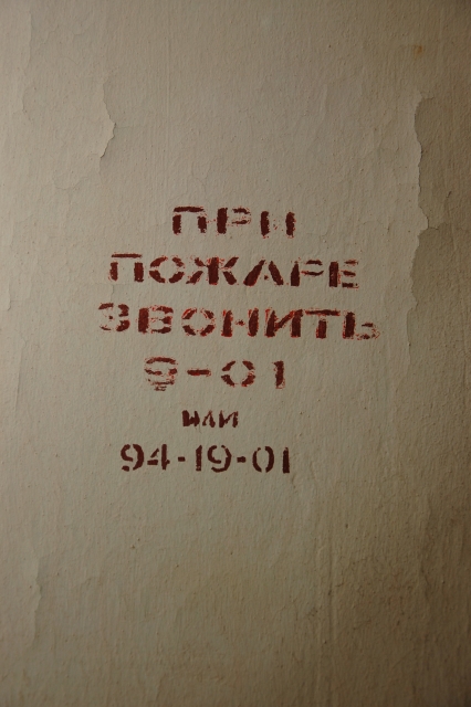 Это техникум. В техникуме мы долго ходили по комнатам. Многое видели – слесарную комнату, кабинет с электрооборудованием. В конце коридора была комната, в которой стояли краски. В ней художники вырезали из пенопласта огромные с человеческий рост буквы и выкрасили в красный цвет. Рисовали буквы к 9-му мая 1986 года, а увидели их – 9 мая 2010-го.