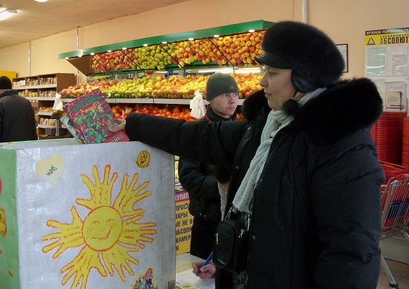 В ходе проведения акции рядом с ящиками, установленными в супермаркетах «Абсолют» (Гвардейский, 44), «Амстор» (пр.Космонавтов, 28) и ТРЦ «Джаз», рядом с Абсолютом (пр. Советский, 46) будут находиться волонтеры, готовые разъяснить цели и задачи акции.