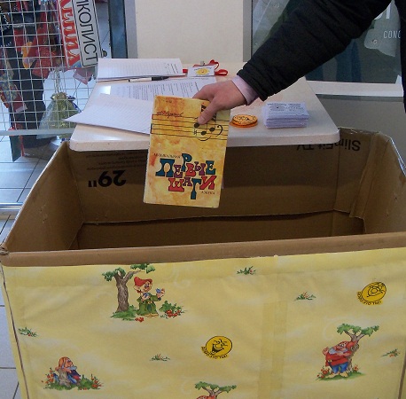 Посетители магазина могут принести книги, канцтовары и игрушки из дому, а могут приобрести в магазине и положить в ящик. (Волонтеры будут находиться в супермаркетах: 17.02 – с 14.00 до 19.00, 18.02 – с 10.00 до 18.00, 19.02 – с 10.00 до 13.00).