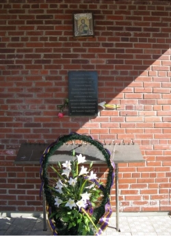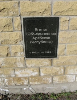 На стене висит плита с надписью: «Государства, которым предоставлялась помощь с участием военнослужащих Советской Армии, Военно-Морского флота, Комитета Государственной безопасности и лиц рядового и начальствующего состава и военнослужащих Министерства внутренних дел бывшего Союза ССР». Над плитой – икона Вседержителя.