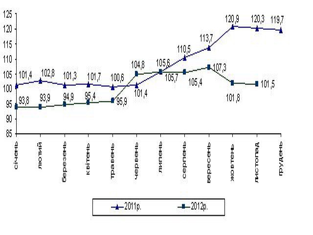 Загальний обсяг виробництва продукції сільського господарства в усіх категоріях господарств за січень–листопад 2012р. порівняно з відповідним періодом 2011р. збільшився на 1,5%, у тому числі в сільськогосподарських підприємствах – на 4,0%, у господарствах населення – зменшився на 1,4%.