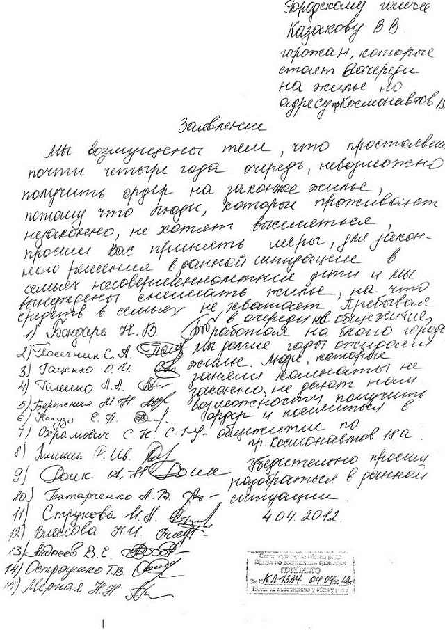 Все вышесказанное И.А. Струкова, Н.И. Власова, С.Н. Охрамович, А.Н. Роик и другие (всего 15 человек) изложили в коллективном заявлении на имя городского головы.