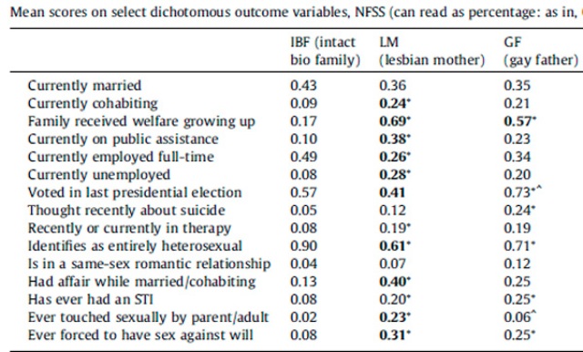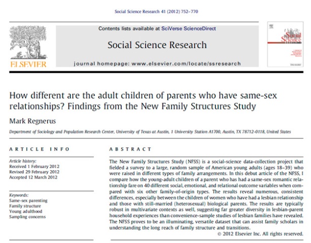 В исследовании принимали участие 3000 взрослых респондентов, чьи родители состояли в однополых сексуальных отношениях. В итоге, полученные данные стали по-настоящему шокирующими. Впрочем, этого стоило ожидать. Но впервые это было доказано авторитетным ученым из авторитетного университета, а результаты были опубликованы в не менее авторитетном издании «Social Science Research».