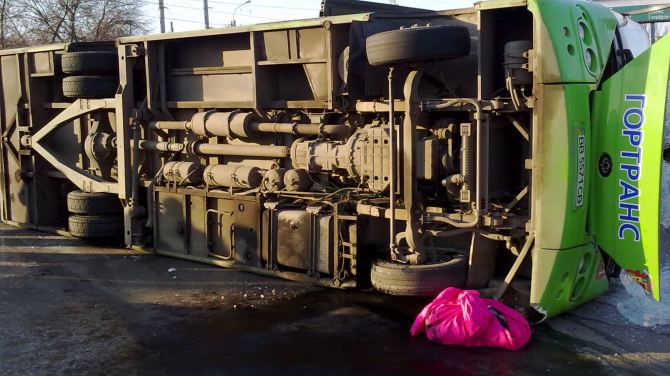 По предварительной информации водитель не выбрал на спуске безопасную скорость, не справился с управлением, задел бордюр, электроопору, произошло опрокидывание автобуса.