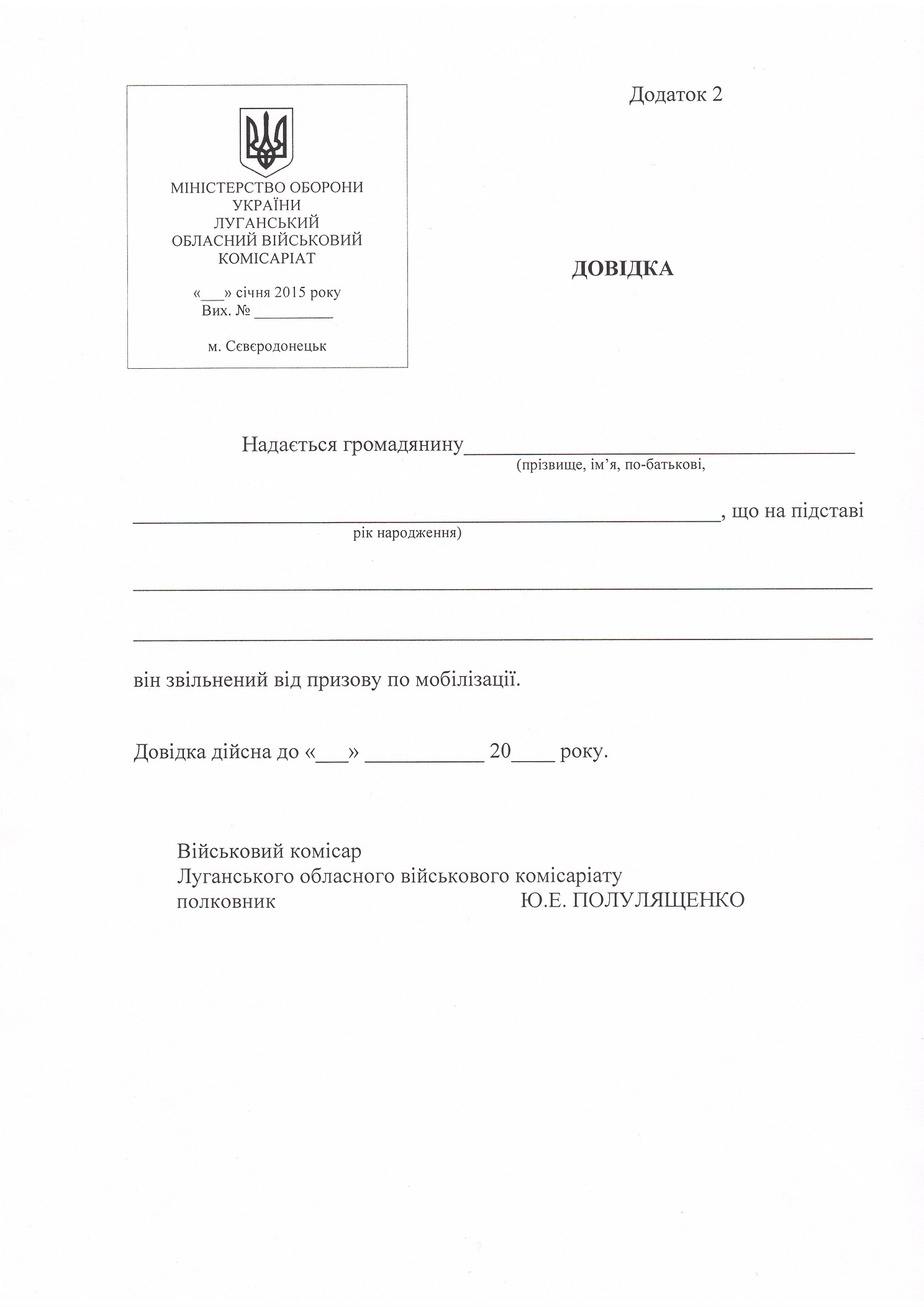 Для отримання довідки треба звернутися до районного (міського) військового комісаріату за місцем проживання. Зразки довідки додаємо.