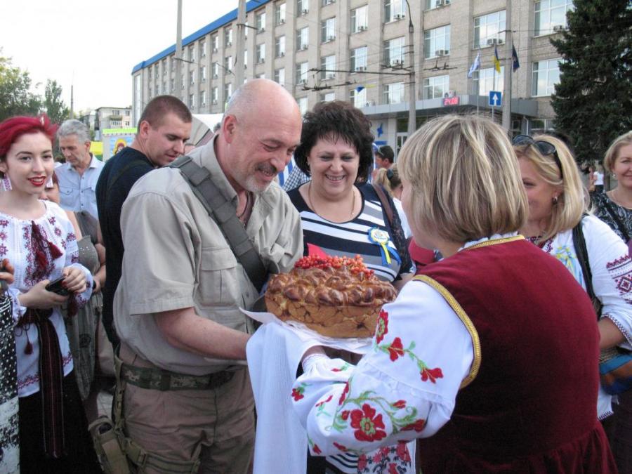 «Я дуже радий бачити таку велику кількість людей на святкуванні. Давайте згадаємо трохи минулого. Банда покидьків, патологічних клептоманів спочатку ґвалтувала Донбас, а потім дібралася до всієї України. У той момент, коли народ постав проти цієї нечесті, ці потвори втекли. У нас з’явилася можливість вперше за 24 роки незалежності приступити до творення, а не до рабства перед цими наволочами. І тут ми отримали перший «братський» удар у спину – Крим. Ще не встигли ми прийти до тями, як ті ж самі покидьки, котрі ґвалтували Донбас, розгорнули тут війну, задурюючи населення міфами про «Руській мір» та «Донбас не поставити на коліна». Звісно, «Донбас не поставити на коліна», оскільки за 15 років вони його поклали долілиць, – відзначив керівник Луганської обласної військово-цивільної адміністрації Георгій Тука. – Ці люди намагаються нас розділяти за тими чи іншими ознаками. Але у них нічого не вийде. Нас усіх об’єднує одне. Так само, як не обирають батьків, так само жодна людина не здатна обрати свою Батьківщину. Наша Батьківщина – Україна. Ми живемо на своїй Богом даній нам землі і нікому її не віддамо. Я вітаю вас усіх зі святом незалежності України».