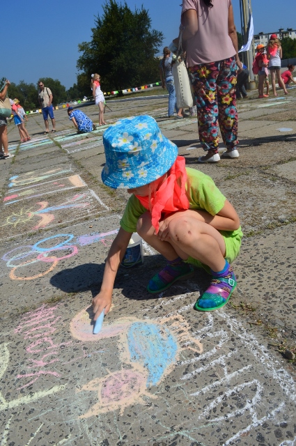 Крім цього, понад 60 юних вихованців обласних дитячо-юнацьких спортивних шкіл взяли участь у конкурсі малюнків на асфальті, який проходив на площі перед Льодовим Палацом спорту.