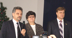 Поздравляли постоянные «шефы» с «Азота». Сергей Лебедев рассказал историю праздника. «Помогать младшим, слушать воспитателей, хорошо учиться» - вот хорошие дела для учеников, которыми они могут порадовать Святого Николая. Председатель профкома Валерий Черныш передал добрые пожелания от народного депутата Украины Алексея Кунченко и всего коллектива «Азота» «делайте добрые дела, как Святой Николай».