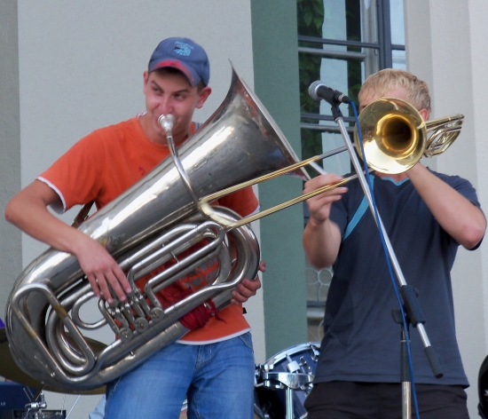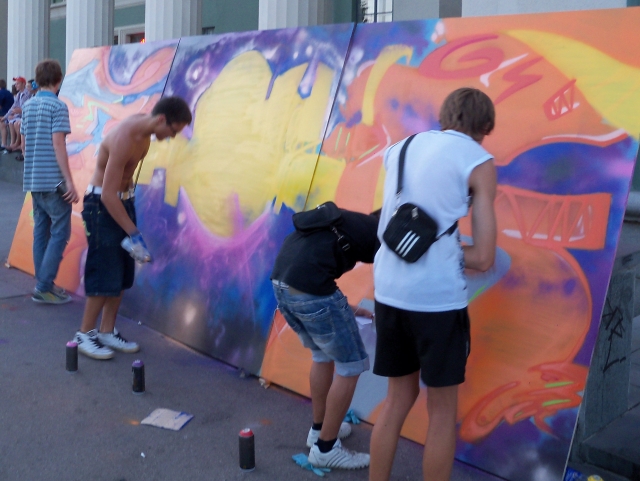 Вторая половина дня запомнилась развлекательными мероприятиями у ДК Химиков, где кроме выступления музыкантов и показа моделей каждый смог испытать свои силы в конкурсах и лазании по стенду для скалолазания.