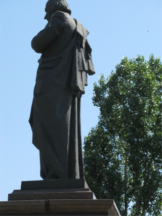 Обходишь памятник по часовой стрелке дальше – ссутулившийся грустный романтик. А со спины чувствуешь движение, которым он откинул небрежно пелерину своего плаща. В полупрофиль, – перед нами Гоголь - актер, напоминающий Цезаря на последнем в его жизни заседании Сената. Пока не видно печати скорби, усталости. Не чувствуется величия и монументальности.
